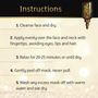 Apply evenly over your face and neck with your fingertips avoiding your eyes and lips. Relax for 15-20 minutes then massage into the skin